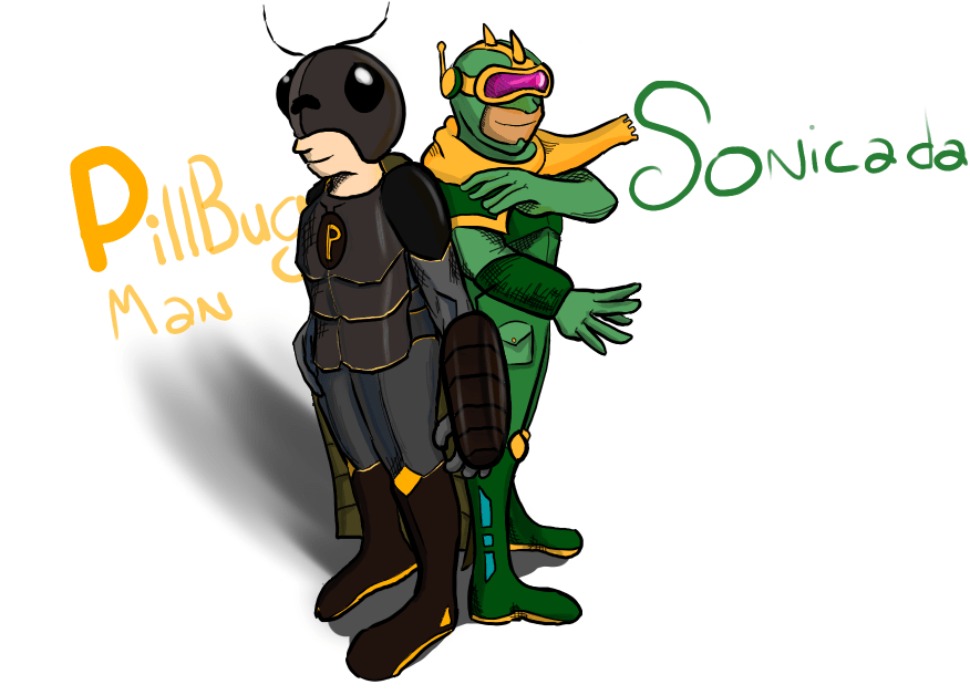 I loved this request and design and wanted to pair him up with Sonicada too since they’re both insect-themed! I tried to keep fidelity to the requester’s original (rad!) design and modified it based on the theme of defense so I provided him a left arm shield. I also made his armor similar to a Rollypolly/pillbug by having different, overlapping layers in his armor and cape that would allow him to fold up.